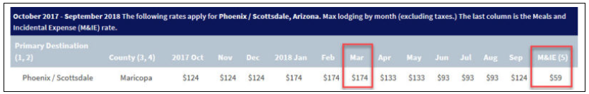 - Daily per diem allowance: $174 (lodging) + $59 (meals and incidentals) = $233